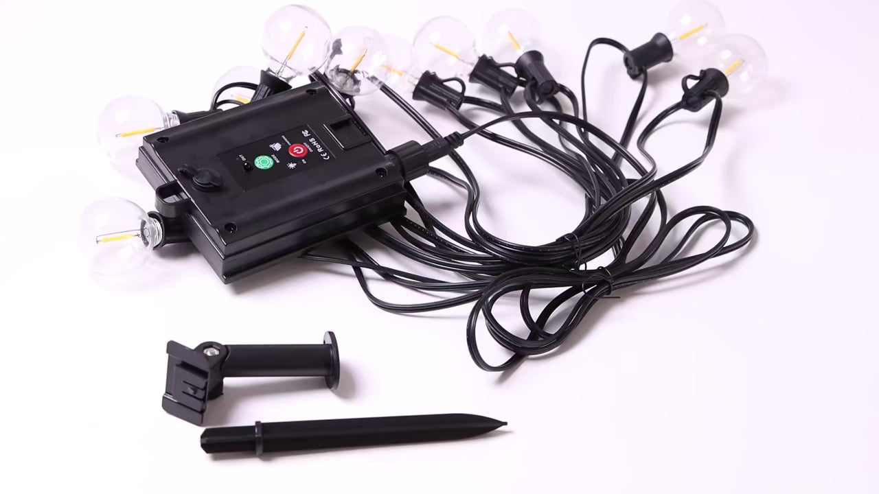 Illuminez votre espace extérieur avec cette magnifique guirlande lumineuse solaire de 12 mètres équipée de 30 ampoules LED G40.